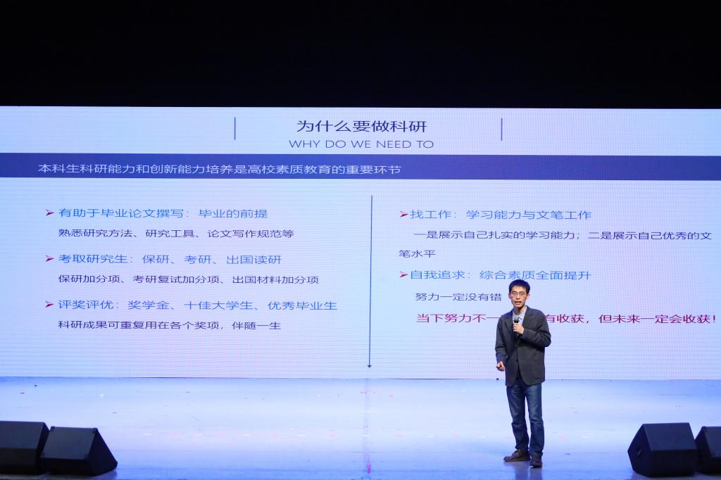 表彰仪式后,公司国际贸易系副教授杨君作“彩虹+”科研训练指导讲座。他强调,课题研究的关键之所在正是将生活经验转化成有意识的课题研究,在深入剖析案例的基础上,围绕问题、目标、方法等要素开展调查研究。杨老师倾情相授让在场的同学们更深刻地体会到“仰之弥高,钻之弥坚”的奥义,也为经管学子科研创佳绩奠定了基础。