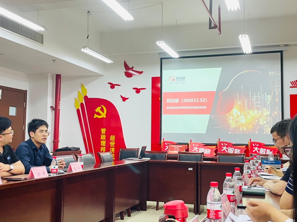 同花顺公司高校事业部全国总监江江和校企合作负责人陈城随后就同花顺公司的发展历程和业务范围做了详细介绍,回顾了近年来公司与各地高校合作时采用的建设方案和发展模式,表达了与经管公司的全面合作,以实践基地为平台,共同探索人才培养与实践科研计划的期待。
