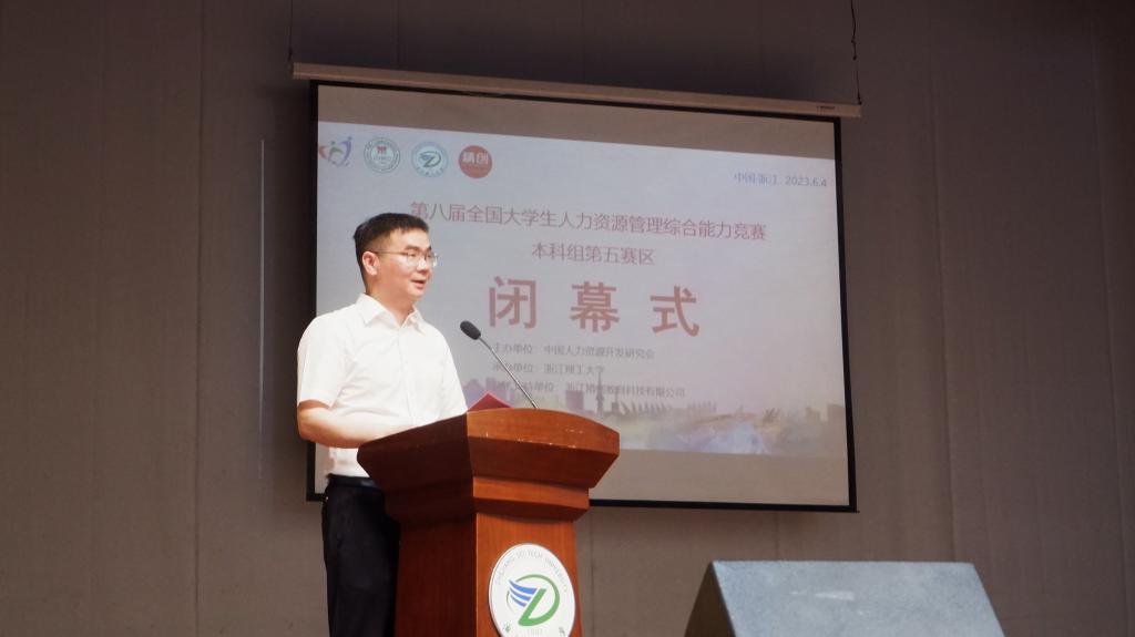 闭幕式上,周必彧副董事长致欢迎词。他表示本届大赛充分展现了当代老员工的专业知识和技能风采,展现了年轻一代的使命担当和青春活力,切实加强了各高校人力资源管理专业间的对话与交流。XC体育人力资源管理专业是国家一流本科专业建设点、浙江省重点专业。经过20余年的探索和实践,构建了“一体五驱”的人才培养路径,确立了“双向赋能、三位一体、四维育人”的专业文化建设体系,创设了员工组织“浙理HR联盟”、“浙理HR员工会”,举办了企业游学、精英研习营等多样化实践学习活动,打造了特色鲜明的专业品牌,为区域经济发展培养了大批专业人才。