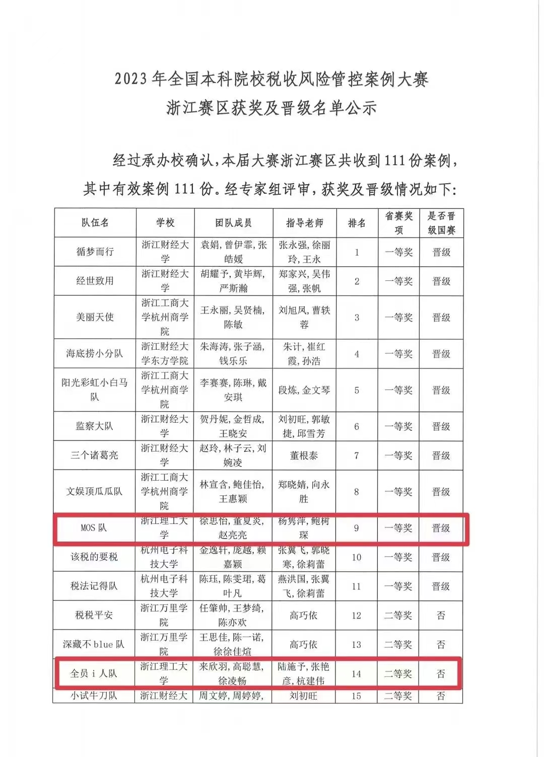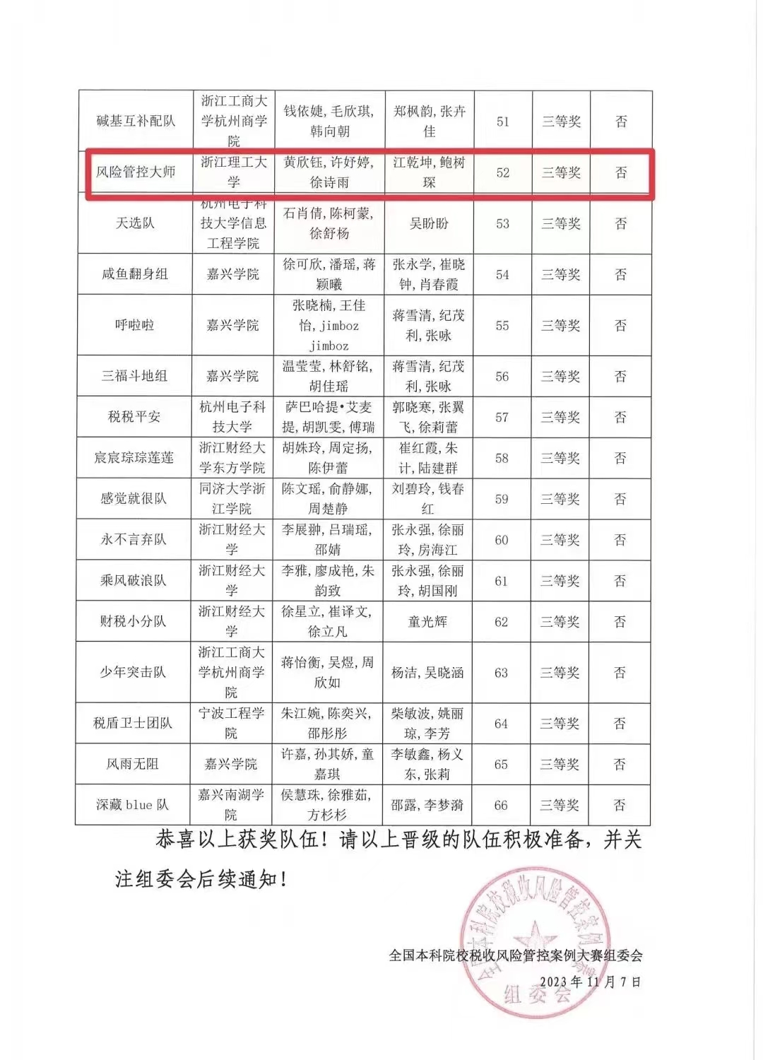 11月7日,2023年全国本科院校税收风险管控案例大赛浙江省分区赛圆满落幕,省内十余所本科院校的111支队伍,共计500余位师生参与比赛。公司共有5支队伍参赛,其中1支队伍获得一等奖、晋级国赛,2支队伍获得省赛二等奖,1支队伍获得省赛三等奖。