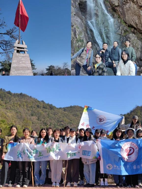 第三站是龙门飞瀑和杏梅尖。龙门飞瀑落差达100多米,是杭州地区落差最大的瀑布。郁达夫曾在《龙门山题壁》中提到:“天外银河一道斜,四山飞瀑尽鸣蛙,明朝我欲扶桑去,可许矶边泛钓搓?”他还在游记中赞日:“龙门山绝壁干切,飞瀑万文,真伟观也。”龙门山杏梅尖,海拨1067.6米,为富阳最高峰,山上林木葱茏,绿水萦风。师生一行通过重走龙门山古道,缅怀新四军金萧支队等革命先烈,激发爱国热情。