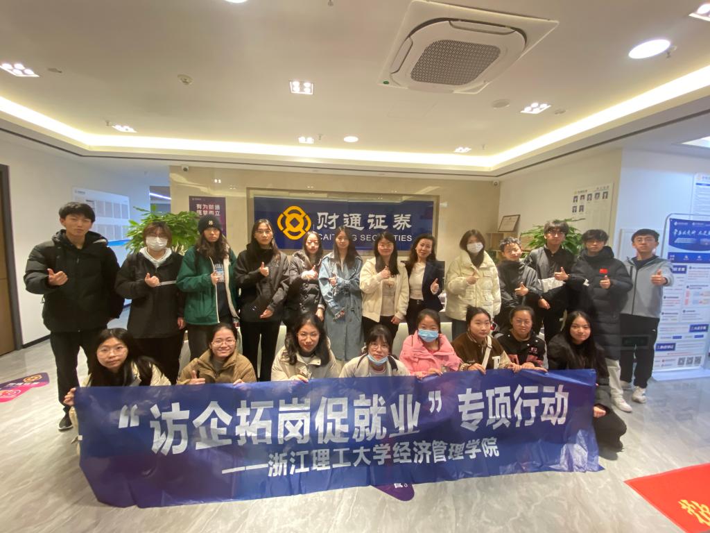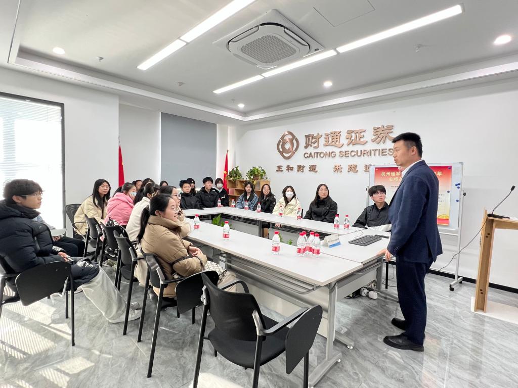 为加大“访企拓岗促就业”力度,积极拓宽员工就业渠道,开拓员工就业、实习新岗位,深化公司与企业的供需对接,2023年12月1日下午,XCSport就业工作指导老师冯可带领本科生一行20人赴财通证券股份有限公司杭州通和路营业部开展“职场体验行”活动。财通证券通和路营业部总经理吴怡悦及公司骨干等热情接待了公司一行。