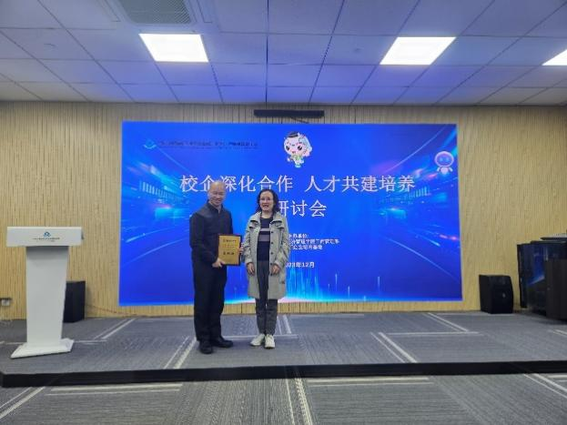 研讨会上,工商管理专业负责人程华教授、工商管理系教工党支部书记兼系主任梅胜军分别为全国专精特新企业培育基地(杭州)产学研融合中心主任王旭敏、执行负责人吕游授牌,邀请两位员工为工商管理专业本科生校外职业教练。