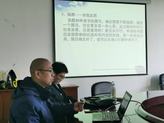 刘洪彬老师是经管公司会计系的资深老师,在浙理从教约15年。其所带来的《非mo不成‘书’》的基金申报经历非常具有借鉴意义。刘老师用亲身经历激励青年学者,国家社科基金申请需要做到“四”磨:1、折磨——屡战屡败;2、耐磨——屡败屡战;3、揣摩——自我反思;4、打磨——反反复复。确实,社科基金申请是个艰难的过程,“非mo不成‘书’”。在座的青年学者受到极大鼓舞,增强了基金申请的信心。除此之外,刘老师还从国家社科基金申报书的结构为大家详细解读国家社科基金申报的经验,如文献综述的梳理、框架结构设计、可行性分析如何进行书写等。参加讲座的老师受益匪浅。