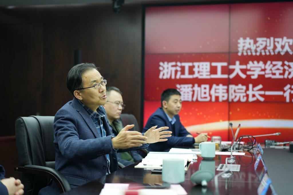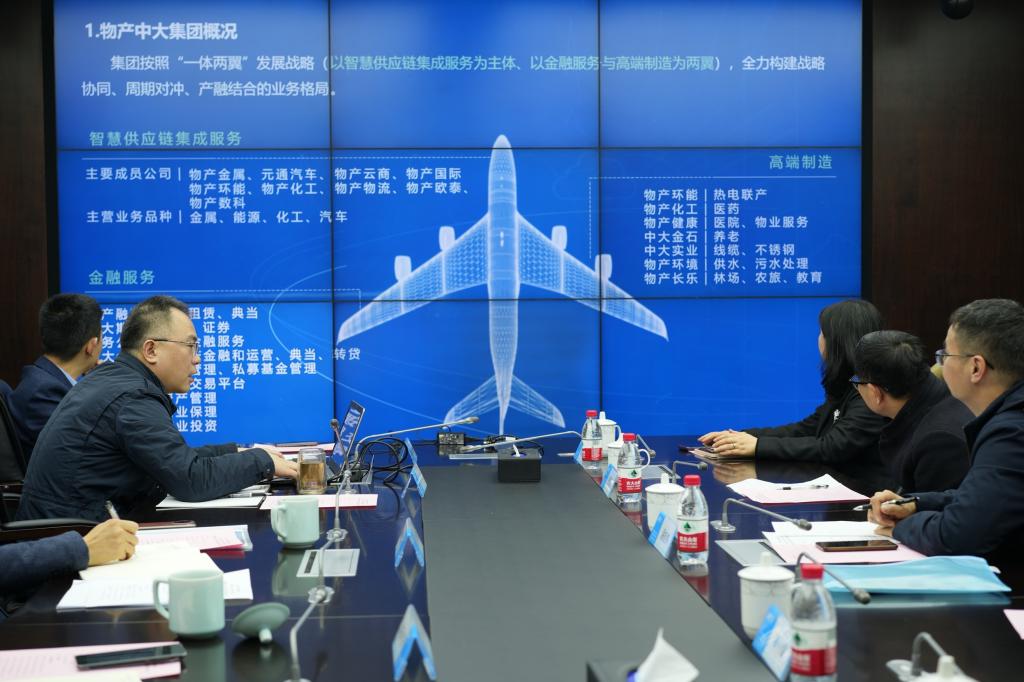 代表团受到物产中大物流集团有限公司党委书记、董事长唐雄伟,副董事长、党委副书记、工会主席陈宙,纪委书记、监事长焦利剑等企业领导的热情接待。陈宙对集团的概况、定位、主营业务、发展战略和数字化建设等方面进行了简要介绍。潘旭伟和祝裼永介绍了物流管理学科与工程学位点的人才培养目标、团队建设体系,期待能在人才培养、双师课程共建、实习就业、科学研究等方面开展进一步合作。