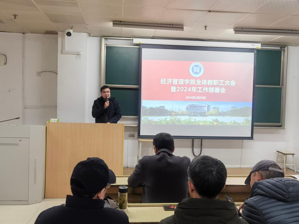首先,潘旭伟经理回顾了2023年度公司取得的主要成绩,同时结合公司十四五规划完成情况和公司2024年工作部署会的精神提出了公司今年主要的目标任务。同时,对公司发展的短板进行了分析,指出今年要在人才引培和科研经费两个方面取得突破,希望广大教职工为公司的发展积极献计献策。