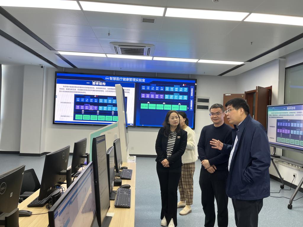 座谈交流后,姜元春副经理带领参观了智慧医疗健康管理实验室和智能制造工程管理实验室,深入了解了两个实验室建设的思路、主要建设内容以及建设取得的成果等方面内容。
