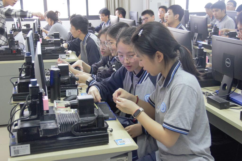 机械工程公司面向杭高钱塘公司的同学们开放了数字工匠坊,带领同学们了解了数控机床雕刻技术,在实践过程中,实验老师操作设备进行雕刻演示,其中展示的科技力量令同学们赞叹不已!同学们按照设计图案,操作机器设备,用数控机床雕刻出了精美图案,并在体验结束后获得了雕刻出的“浙理欢迎你”作为纪念品。