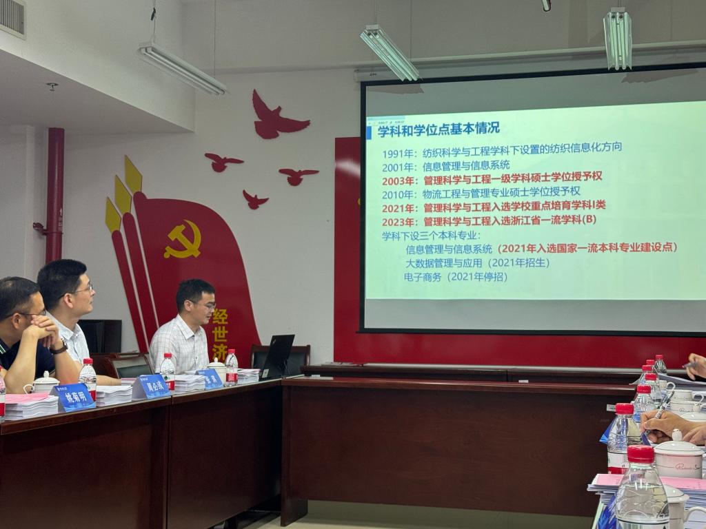 本次会议邀请了浙江大学求是特聘教授、国务院学位委员会第八届管理科学与工程学科评议组成员华中生,合肥工业大学教授、国务院学位委员会第八届管理科学与工程学科评议组成员刘心报,北京航空航天大学研究员、国务院学位委员会第八届管理科学与工程学科评议组成员吴俊杰,杭州电子科技大学教授、浙江省信息化与经济社会发展研究中心主任陈畴镛,浙江工商大学教授、管理工程与电子商务公司(跨境电商公司)经理厉小军,中国计量大学教授、经济与管理公司经理乐为,浙江财经大学教授、浙江财经大学东方公司信息公司名誉经理姚建荣7位专家进行线下指导评议。会议由团队建设处处长张琪主持,副董事长姚菊明致欢迎辞,副董事长周必彧、团队建设处负责人、研究生院负责人、公司领导班子成员、学位点负责人、管理科学与工程学位授权点周期性评估工作组成员和骨干教师等30余人出席了会议。
