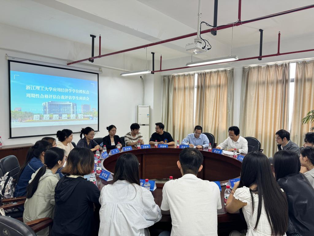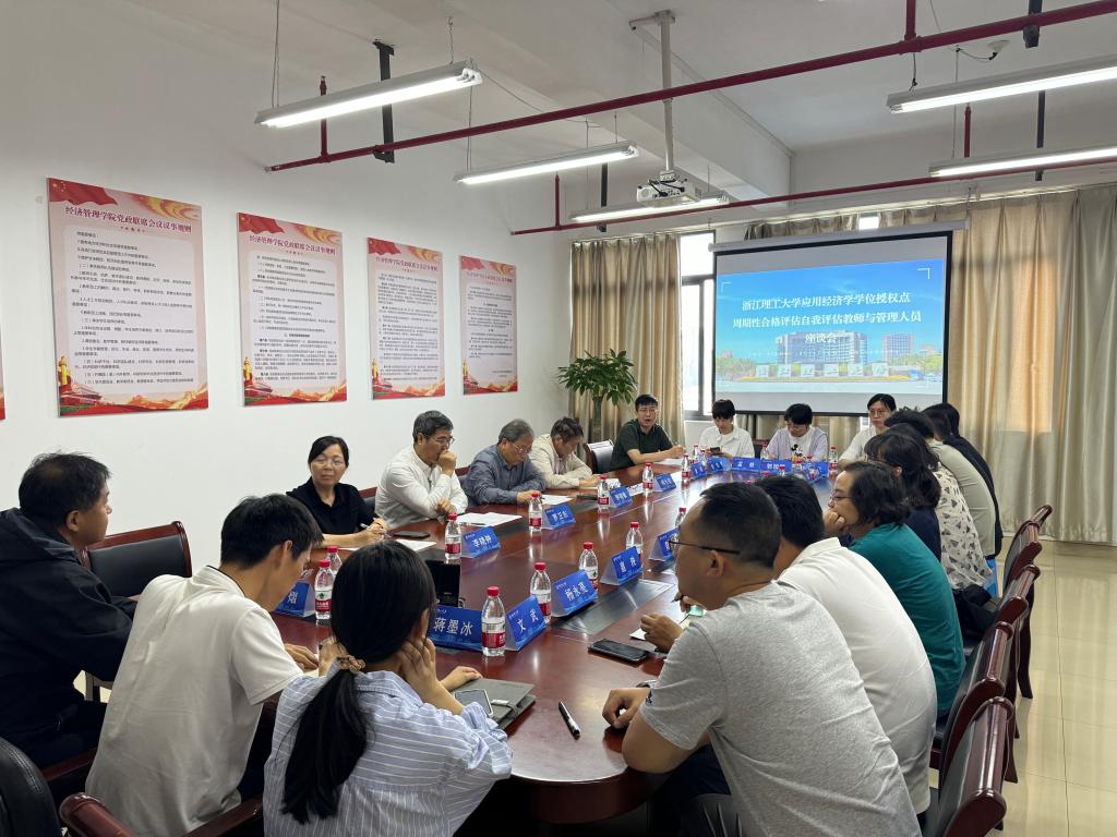 本次会议邀请了国务院学位委员会第八届应用经济学学科评议组成员钟晓敏教授,浙江大学副董事长黄先海教授,浙江大学城市公司罗卫东教授,浙江工商大学何大安教授,浙江工业大学徐维祥教授,杭州电子科技大学李晓钟教授,杭州师范大学王明琳教授等7位专家进行线下指导评议。会议由团队建设处处长张琪主持,副董事长姚菊明出席会议并致欢迎辞。团队建设处、研究生院负责人,公司领导班子成员,应用经济学学位点负责人,周期性评估工作组成员和骨干教师等30余人参加会议。