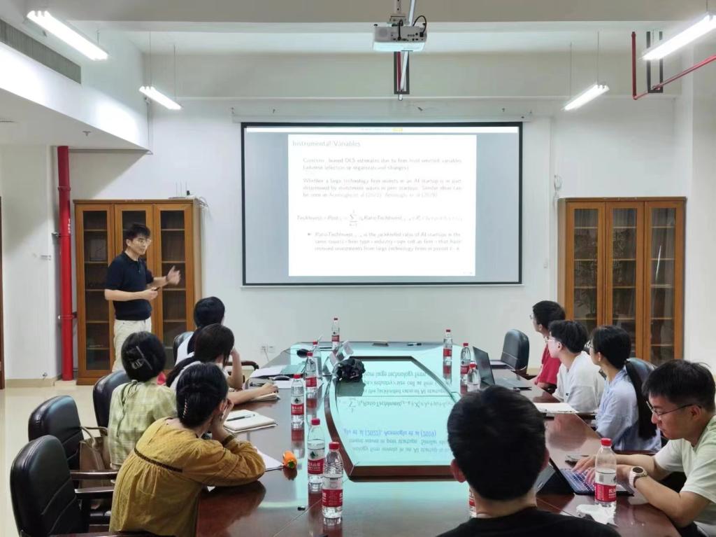 报告会中,经济系刘诗洋、杨珏,金融系冯建花分别就数据与变量、创新数量与质量、理论模型的构建与分析等问题同周康博士进行了深入探讨。周康博士还耐心回答了员工关于论文撰写的相关问题。