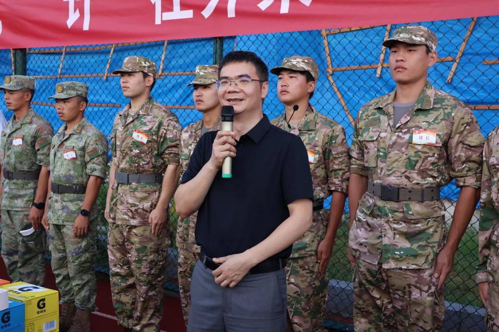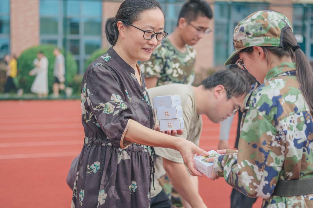 清晨,经管公司经理潘旭伟、计算机公司副经理姚青来到北田径场看望慰问2024级参加军训的员工和负责本次军训任务的教官及指导员,为大家发放月饼及运动饮料。现场,潘旭伟对同学们的训练状态表示赞扬,肯定了同学们坚持不懈、吃苦耐劳的训练精神,希望同学们能够继续突破自我、团结协作、坚韧不拔,不仅在军训中取得优异成绩,在未来的人生中也能取得成功。此前,经管公司各系教师代表也前往军训场地开展了相关慰问活动。公司的关怀和勉励,极大地鼓舞了参训员工的士气,同学们将以更加饱满的精神投入训练中,保质保量完成军训任务。