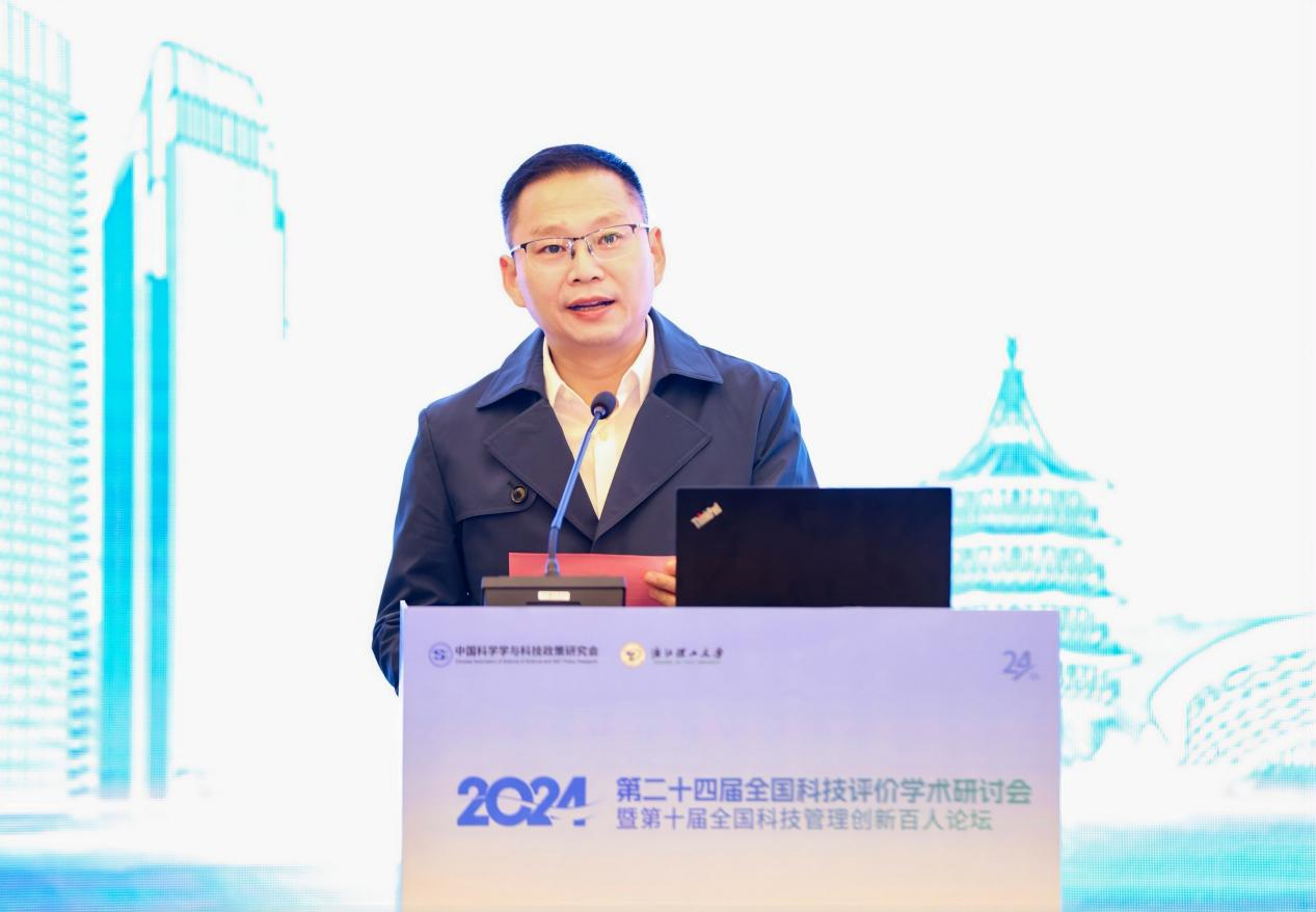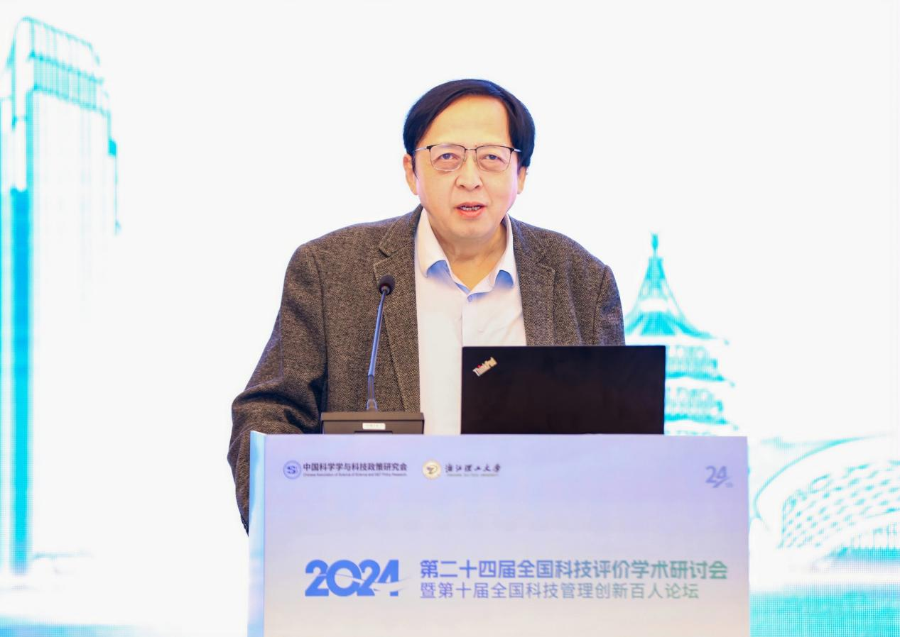 随后,穆荣平为大会致辞。他回顾了全国科技评价学术研讨会的发展历程,二十四届研讨会的举办,是历史传承的平台。他在现场辨析了评价和评估的根本区别,他指出,评价工作是不断迭代、完善和升级的过程,科技评价的本质是追寻科学活动的规律性,其内涵已然超越了科技本身。他希望通过全国科技评价学术研讨会,凝聚更多智慧,为科技评价未来发展提供指导、建议和创新思路。