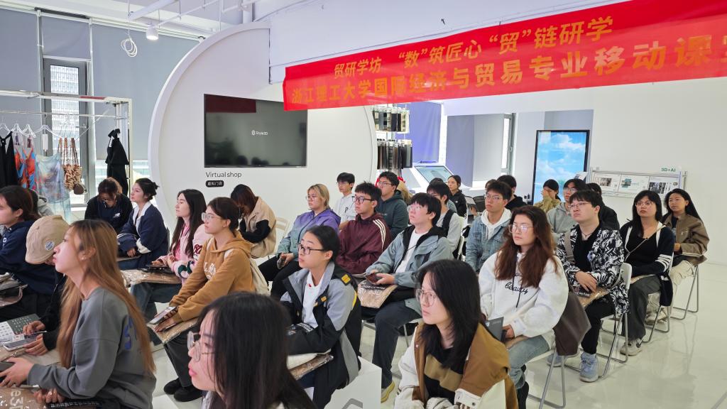 在数字化浪潮的推动下,国际贸易正经历着前所未有的变革。2024年11月13日,XCSport国际贸易系教师傅纯恒、成蓉、杨君带领2023级国际经济与贸易专业及国际经济与贸易(全英文授课班)全体员工参访了杭州凌迪数字科技有限公司,旨在深入了解数字科技在时尚产业中的应用,以及如何通过技术创新推动国际贸易的发展。