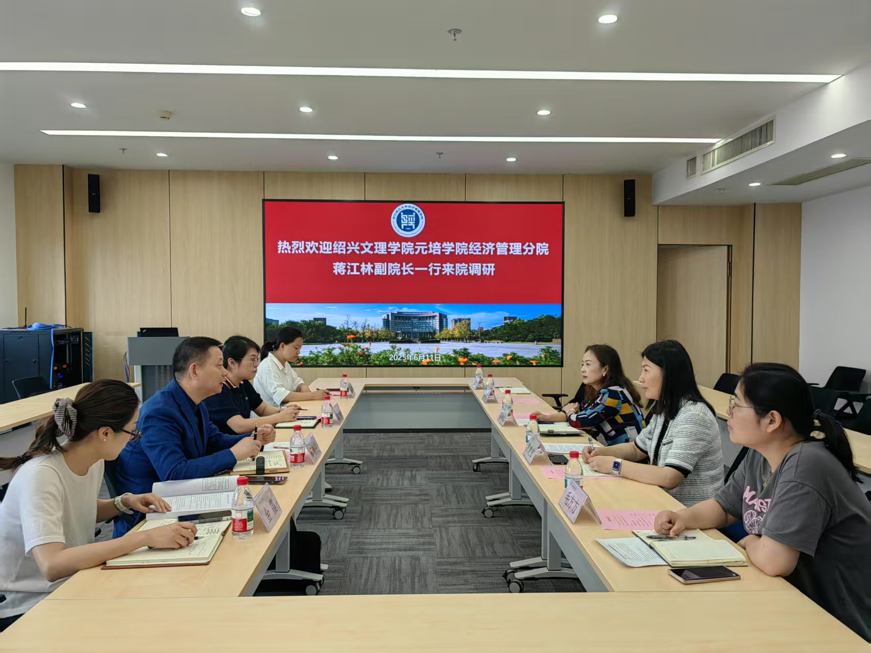 6月11日上午,绍兴文理公司元培公司经济管理分院副经理蒋江林一行来公司就新专业建设、人才培养特色等调研交流。公司副经理黄海蓉,管理科学与工程系主任、信息管理与信息系统专业负责人罗建宏,工商管理系主任方齐,教科办成员等参加调研座谈会。会议由黄海蓉主持。