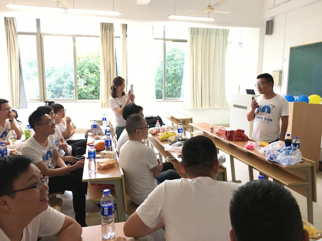 下午一点半,员工们陆续返回教室,在教室后面的海报上签下了自己的名字,留下了一个有意义的纪念。回到座位,伴随着轻柔的音乐,看着大屏幕上放着的老照片,大家都十分感慨,看着这些熟悉而又温馨的照片,他们仿佛又回到了十年前。接着,员工们按着当年的学号,一个接着一个上台分享了自己的感受,他们都不约而同地表示了重聚的喜悦以及对下一次聚会的期待。分享过后,同学们进行了一场有趣的游戏——你演我猜,他们分成了两个队伍,来了场“猫狗”大比拼。