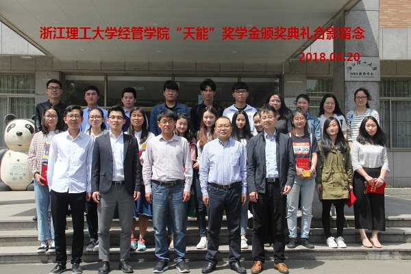 紧接着,黄新海宣读本次天能奖学金获奖名单,各领导嘉宾先后为本科生、研究生获奖者颁发证书。随后,15金融一班余翔代表获奖同学发言,他指出在学习过程中要仰望星空但更要脚踏实地,并向学弟学妹强调“充分利用好公司与企业双平台”的重要性,给他们的大学发展方向指明了一条道路。