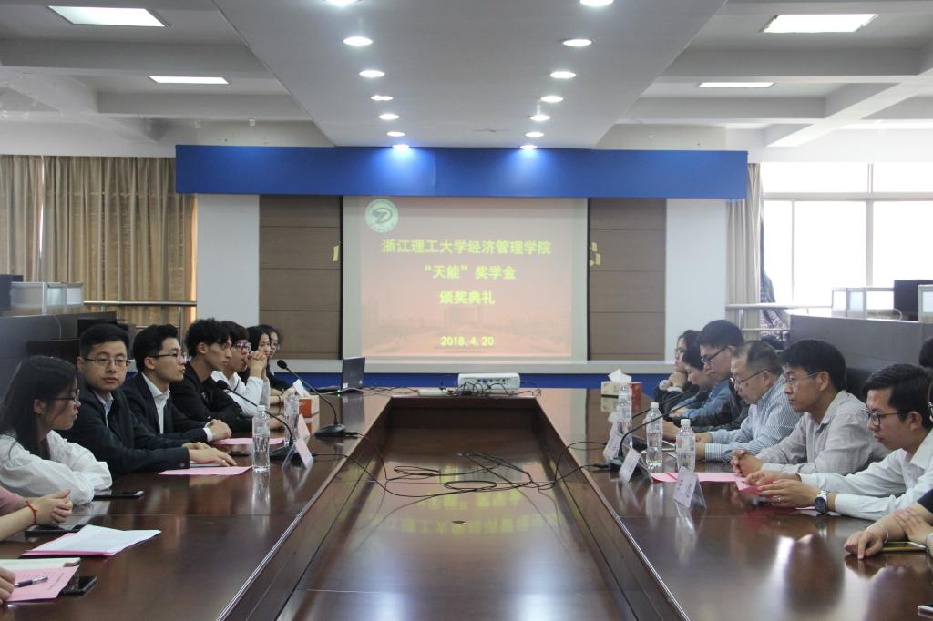 2018年4月20日上午,XCSport在7-407教室举办“天能”奖学金颁奖典礼。出席典礼的嘉宾有天能集团党委委员、人力资源副总监魏吉安,人才管理经理赵海锋,经管公司党委书记吕品,党委副书记黄新海,辅导员王忍、张维标以及获奖员工代表,典礼共分为五项议程。