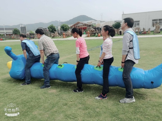按照行程安排每天上午十点,教师队伍到达拓展基地,在进行必要的热身运动之后,参训教师分成红蓝两组,开始进行对抗拓展活动。第一个项目是分组团队建设,在完成队长、队名等队伍建设之后,两队正式开始比赛,该项目相对轻松愉悦,以体验式的互动形式,创造学员融入团队的集体氛围。第二个项目是团队集体游戏操与亲子互动活动,教师及小孩根据教练指令做出反应和完成不同复杂程度的动作,有效增进团队成员之间的感情。第三个项目是毛毛虫接力赛,该项目由红蓝两队每对派出几名队员分小组进行接力赛,主要培养学员之间的默契与协作精神。拓展活动结束之后,每位教师都表示受到了很好地锻炼,活动的举办对促进教师之间的沟通交流和公司团队建设具有重要的意义。