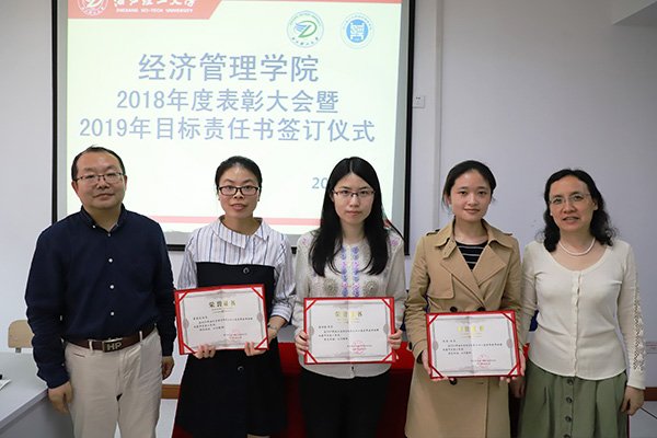 大会最后,黄新海宣读了第二十一届青年教师讲课大赛获奖人选,吕品、程华共同为他们颁奖。会议最后,黄新海强调,希望大家能把签订的目标落实、落实,再落实。他认为,签订仪式签下去的是姓名、领回去的是任务、扛在肩上的是责任。摆在我们面前的只有“奋斗”和“拼搏”,这样才会有经管地位,才会有经管作为。