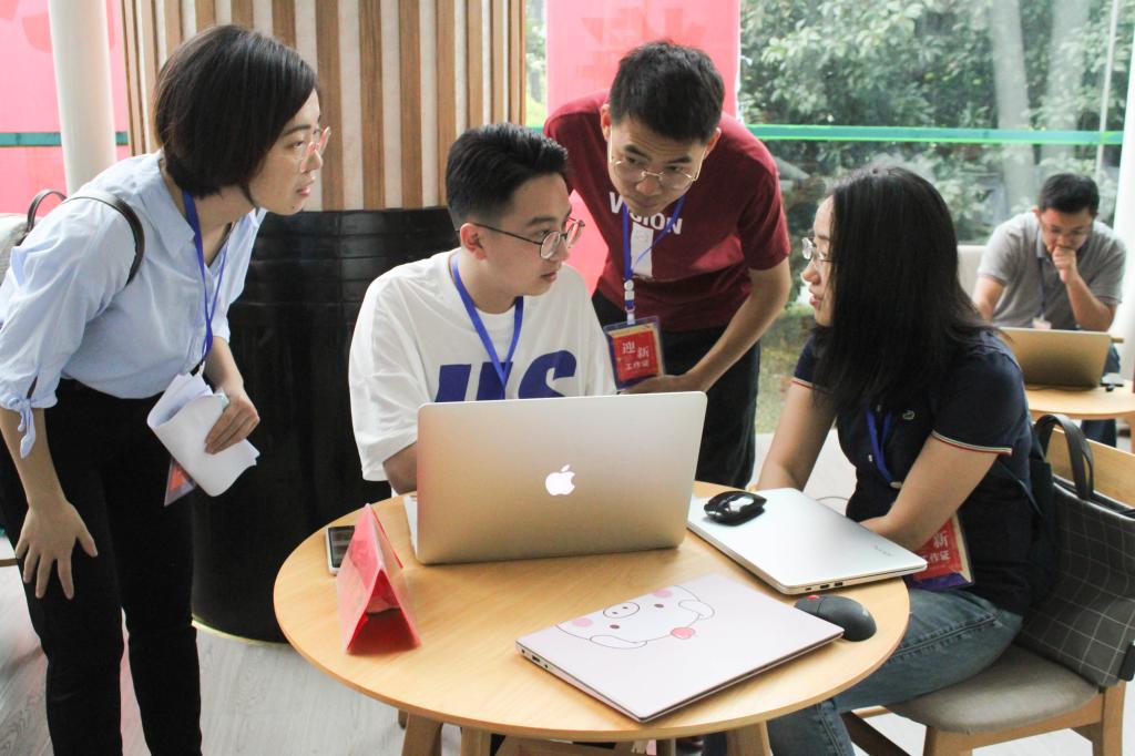 校园内部各处设有指示牌和志愿点,志愿者主动帮助新生拎行李,介绍公司详情,在他们的指引帮助下,新生顺利完成报到流程。此外,众创空间的绿色通道工作同步开展,在室内外分设咨询点和登记处,工作人员除对新生进行答疑外,还及时探讨完善工作细节。随后,员工组织也深入新生内部进行采访,并手持车票、朋友圈截图等样式的KT板亮相于生活区,借助新潮的方式帮助新生适应陌生环境。