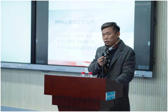 12月28日上午,公司MPAcc教育中心在25号楼418教室开展了MPAcc论文写作专题讲座,邀请浙江工商大学会计公司经理、二级教授胡国柳老师开讲。本次讲座由公司MPAcc教育中心鲍树琛老师主持,2019级、2020级全体MPAcc员工和会计系部分老师参与聆听。