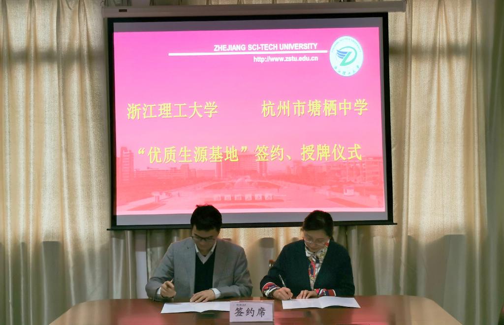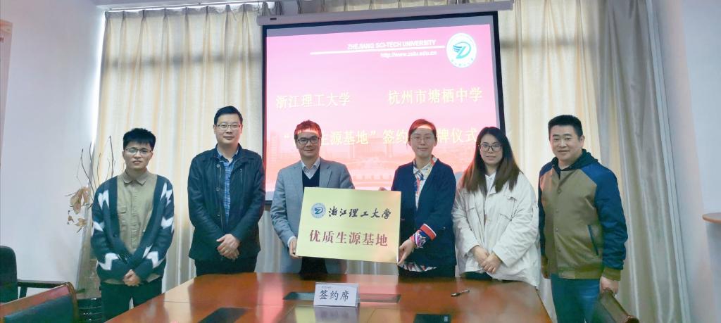 之后,双方签订了优质生源基地建设协议,潘旭伟代表公司向杭州市塘栖中学授“XC体育优质生源基地”牌匾。