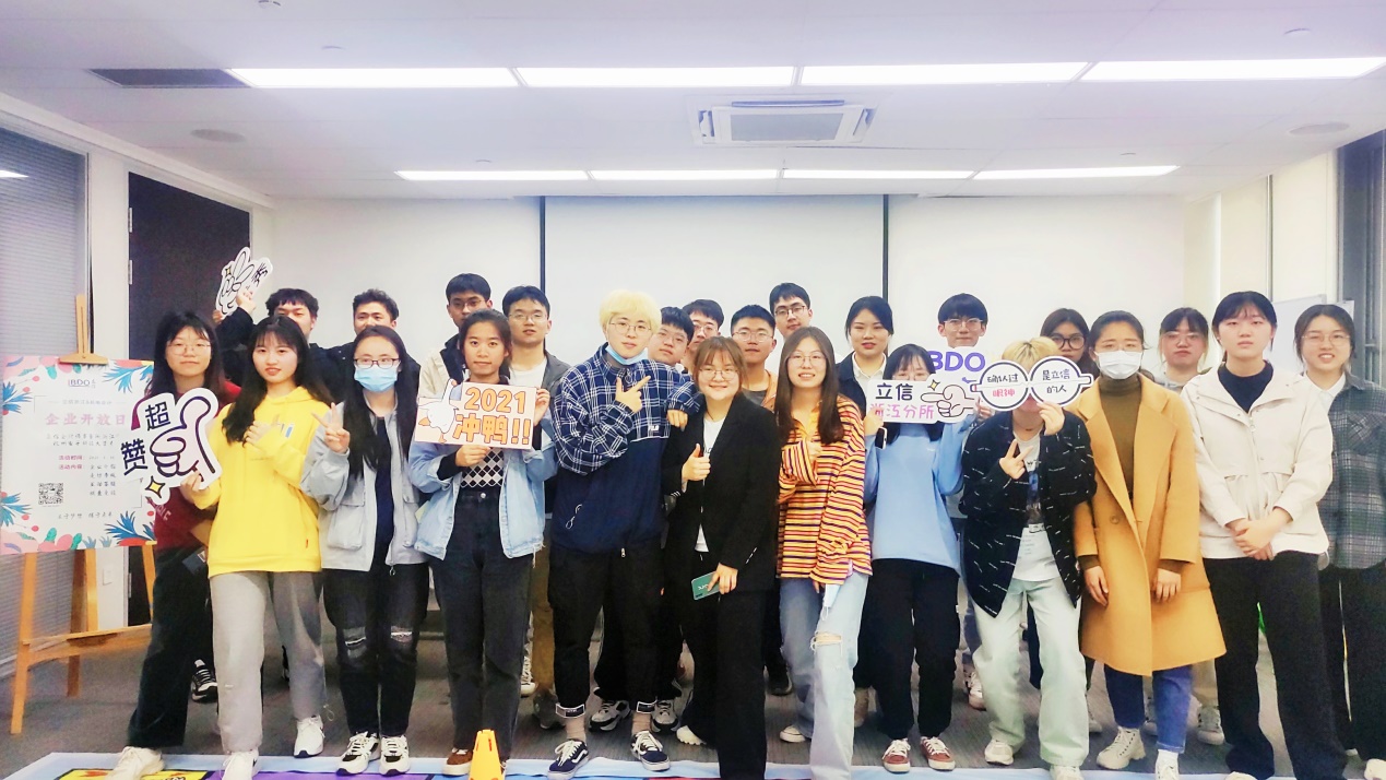 会议室里,立信所合伙人代表陈瑜向同学们详细介绍了立信会计师事务所的发展情况、行业地位和业务领域,并结合自身经历,讲述了自己从研究生毕业加入立信所到成为合伙人的职业发展历程,让同学们对立信所的晋升途径有了详细了解,也激励了同学们要青春无畏、奋斗不歇。