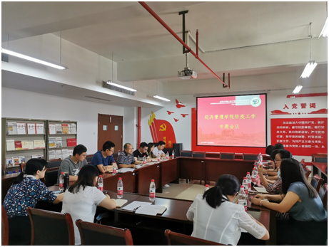 会上,吕品书记再次传达了8月6日和8月9日公司疫情防控领导小组两次会议精神,以及8月9日省教育厅新冠肺炎疫情防控视频会议精神。并结合前期公司疫情防控升级的六条通告和十条防控措施再次做了强调和布置,并就暑期和开学前公司的疫情防控工作进行了部署。党委副书记高山通报了暑期员工防疫工作开展情况、存在问题和开学准备工作方案;副经理黄海蓉传达了公司疫情防控与本科教学工作专题会议的精神和要求;综合办章占云介绍了暑期公司疫情防控情况及最新的防疫要求。