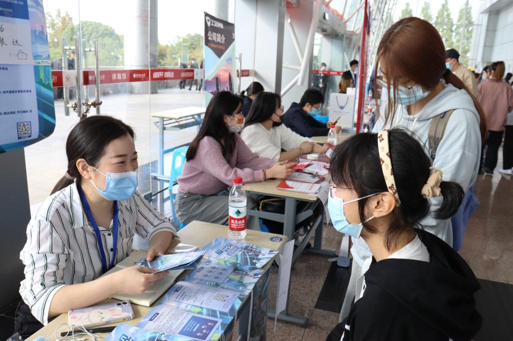 与此同时,由XCSport主办,浙理HR联盟、19级人力资源管理专业承办的2021年XCSport秋季专场招聘会在体育馆二楼举办。招聘会涉及金融、制造、教育、互联网等多个行业领域。到场企业近百家,提供岗位1000余个,到场员工400余位,企业收到简历1000余份,预计达成初步就业意向近300人。现场,同学们在各企业摊位前咨询工作内容、职业发展等相关情况,用人单位耐心为应聘员工解答岗位工作内容、薪酬情况、未来发展方向等问题。