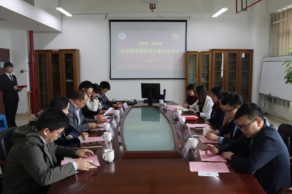为进一步深化院企合作,探索产教融合新模式,11月3日下午,经济管理公司在25号楼1910会议室召开院企座谈会。中信证券、得力集团、交通银行、立信会计师事务所、喜临门家具等公司领导出席活动,公司党委书记吕品,副经理黄海蓉,学工办主任、团委书记吴霁乐及毕业生辅导员参与活动,活动由公司党委副书记高山主持。